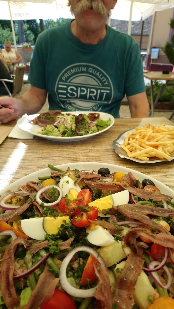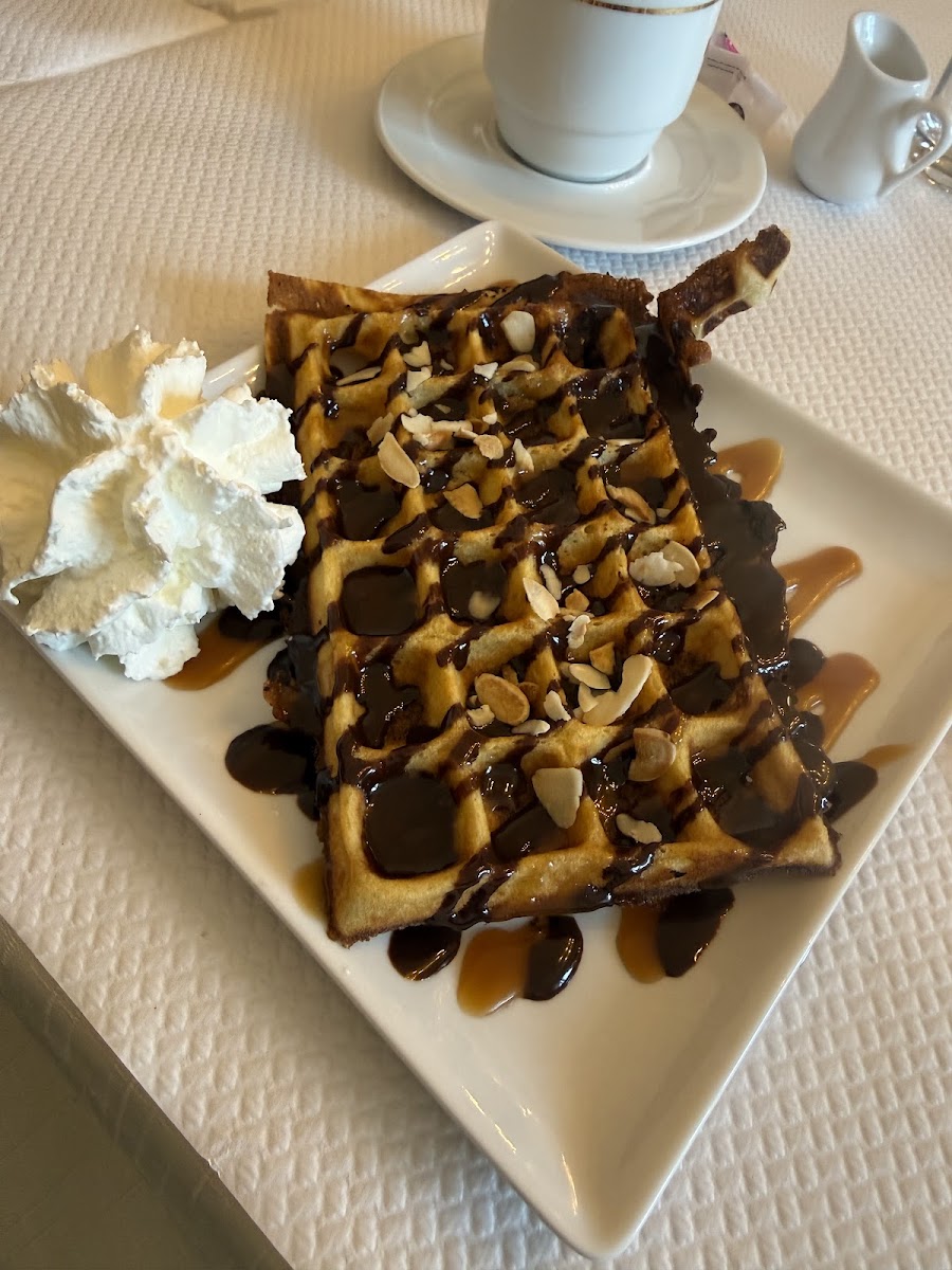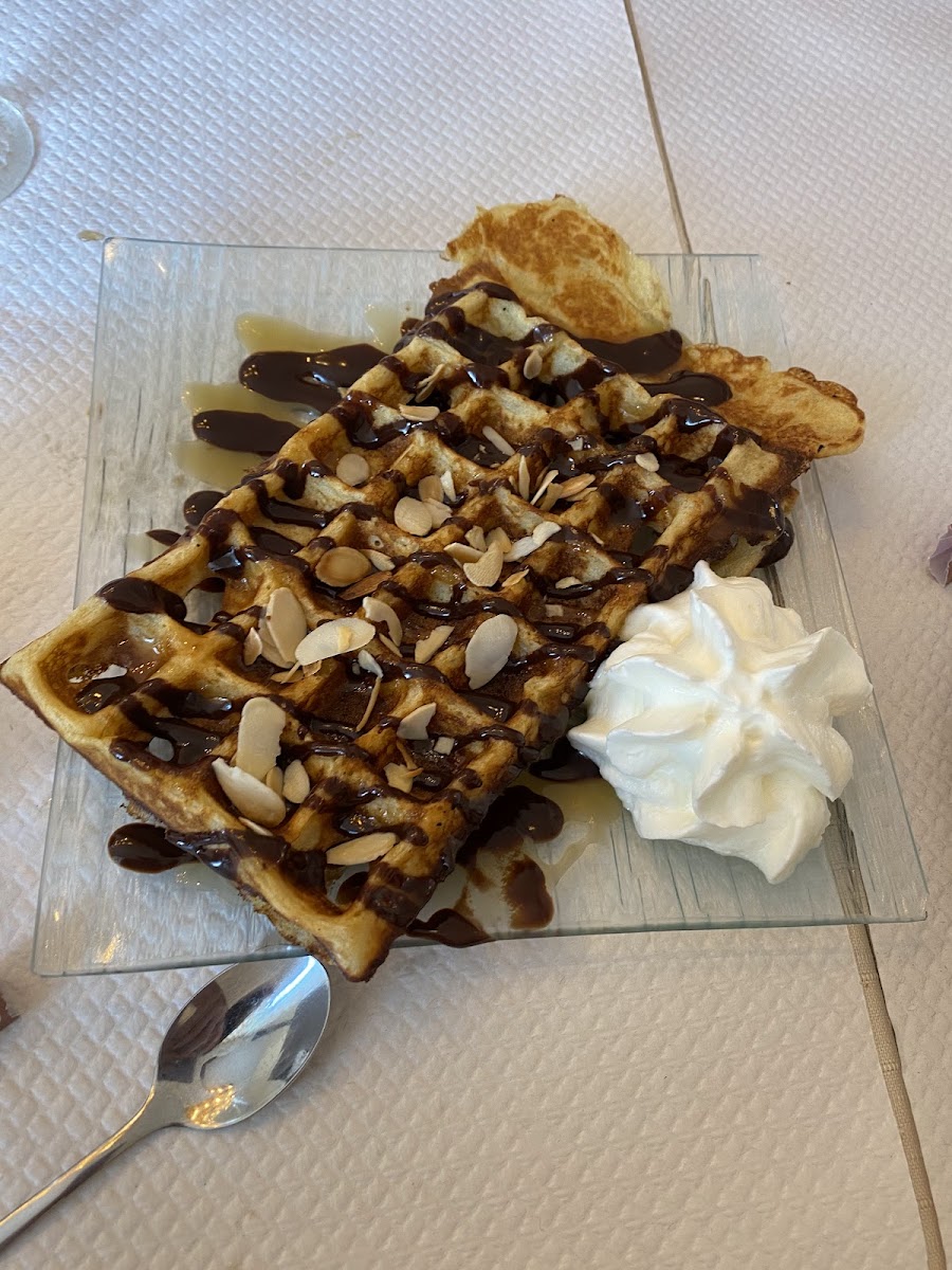 If you’re in the mood for a traditional French dish, you can't go wrong with the Salade Niçoise. This vibrant salad features tuna, olives, eggs, and vegetables, offering a refreshing combination of flavors. It’s a great option for anyone looking for a healthy and satisfying meal. And for dessert lovers, make sure to try the Gaufre de Liège. These Belgian waffles are golden, crispy on the outside, and soft on the inside, topped with powdered sugar for a sweet treat to finish your meal.